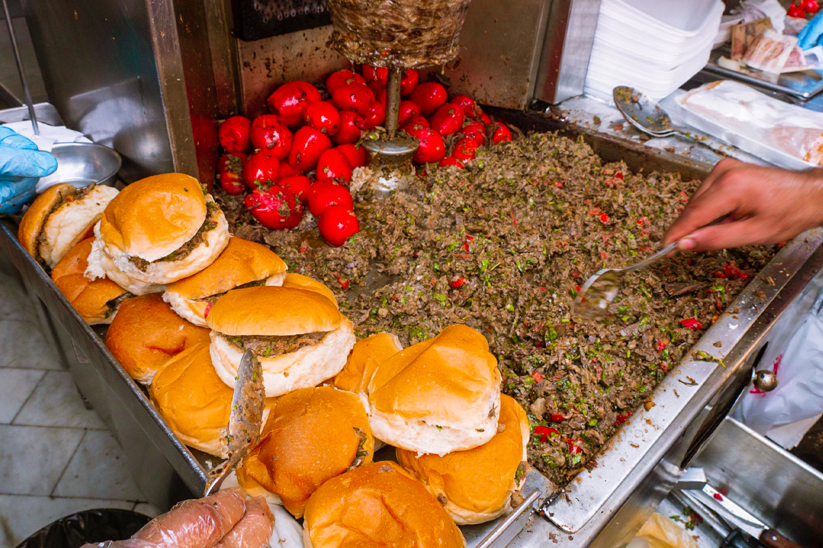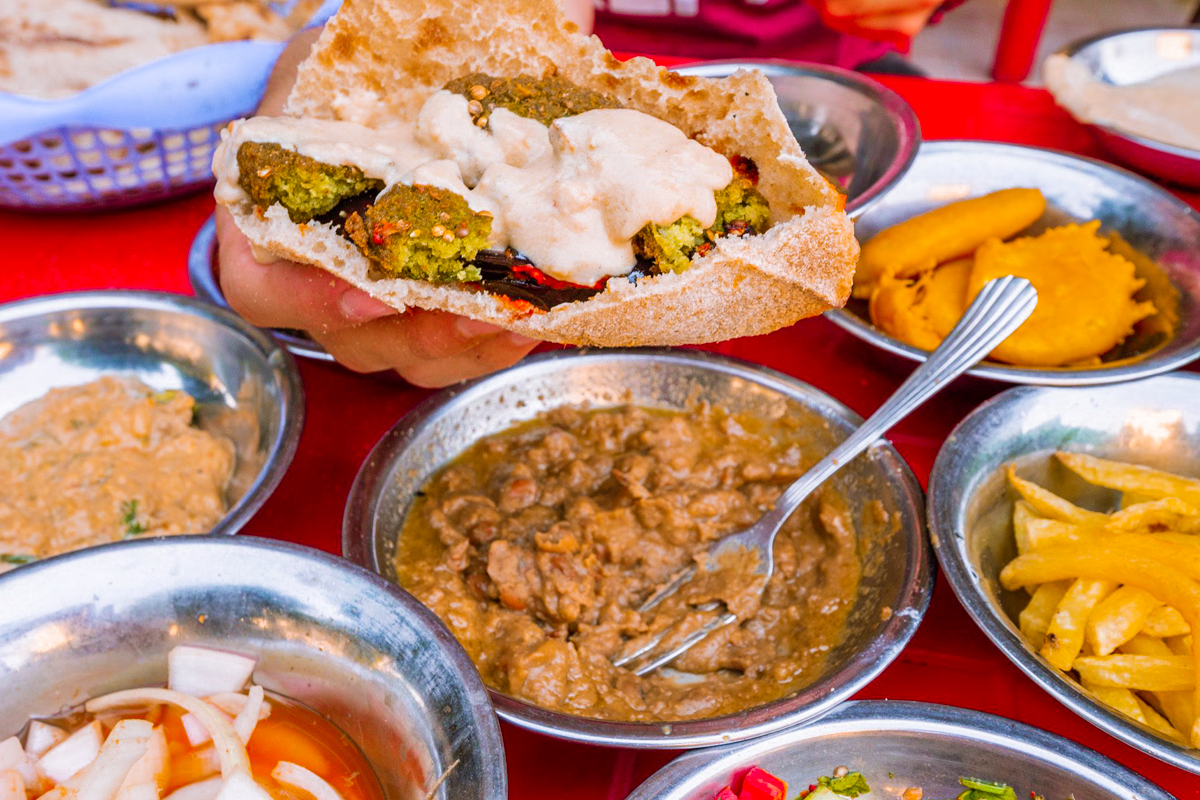 Taste crispy falafel, slow-cooked fuul (fava beans), shawarma, and famous Egyptian liver sandwiches prepared fresh in front of you.