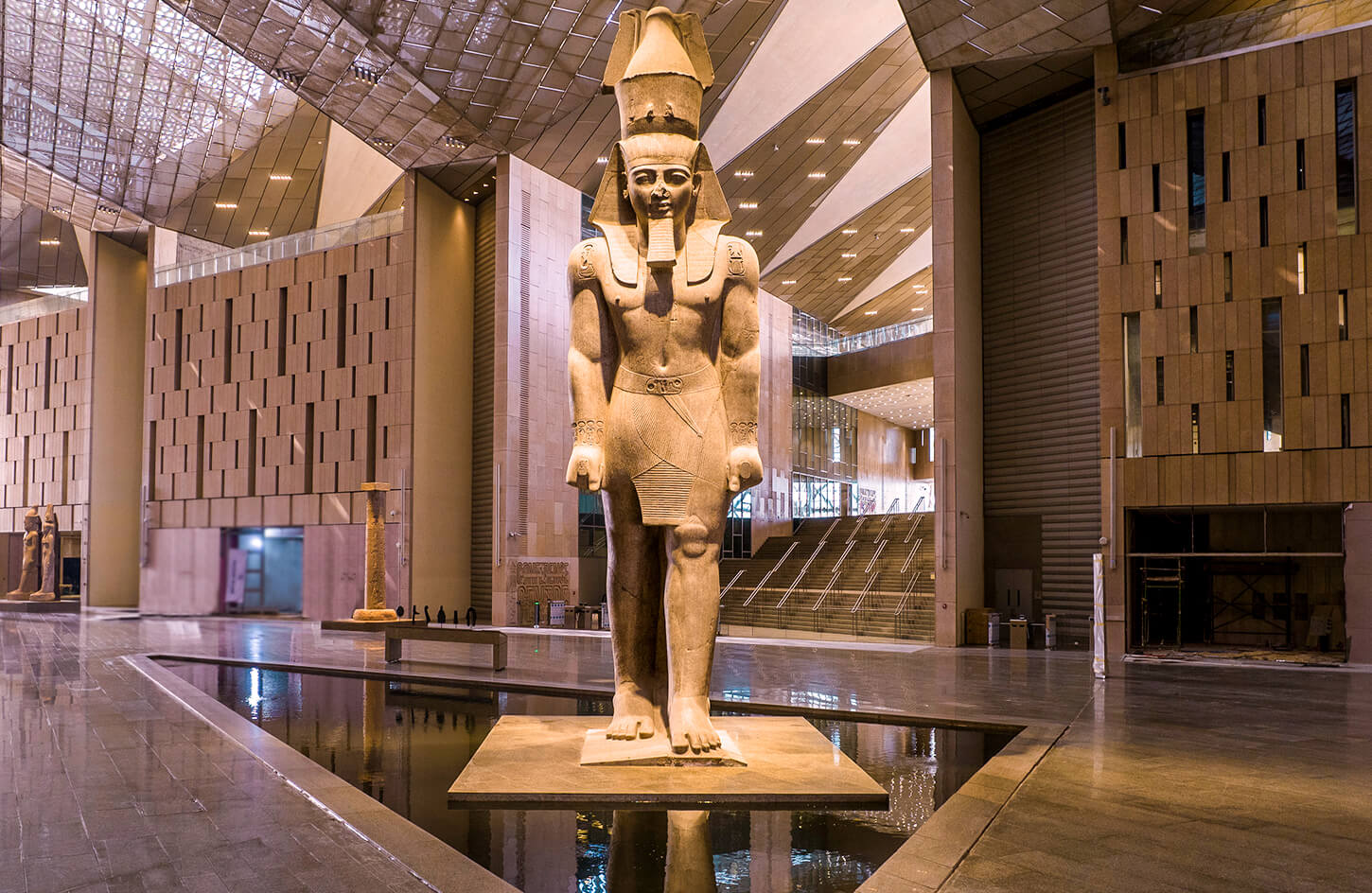 • The monumental Ramses II statue welcoming visitors in the main atrium
